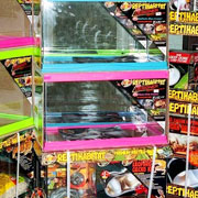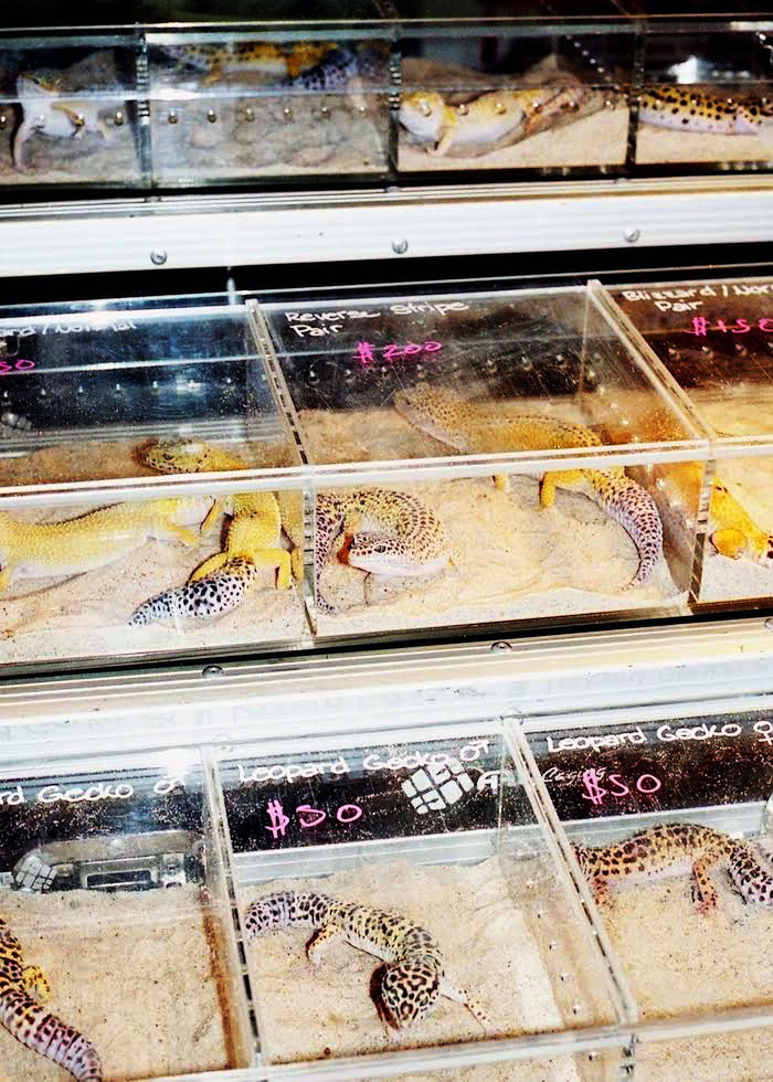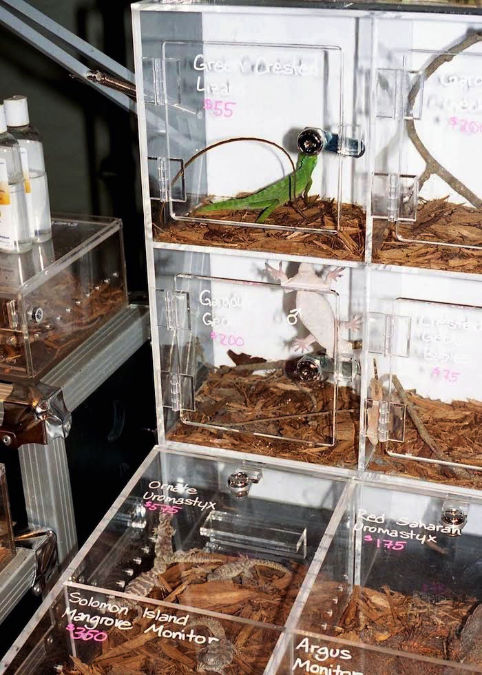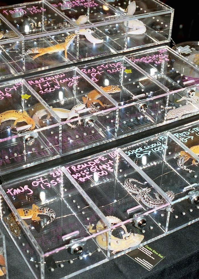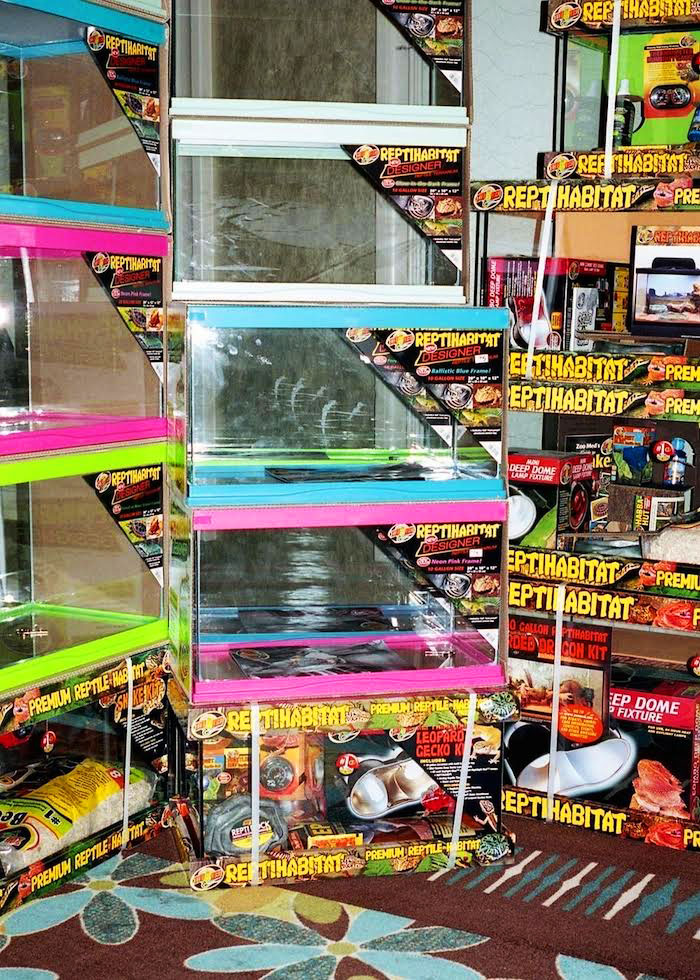 En uno de los salones para eventos del hotel, se expuso todo tipo de animal reptiliano para los amantes de los reptiles. Una variedad de serpientes, lagartijas, escíncidos y arácnidos, de todos tamaños y colores, estaban a la venta (además del mejor alimento para éstos y terrarios personalizados).