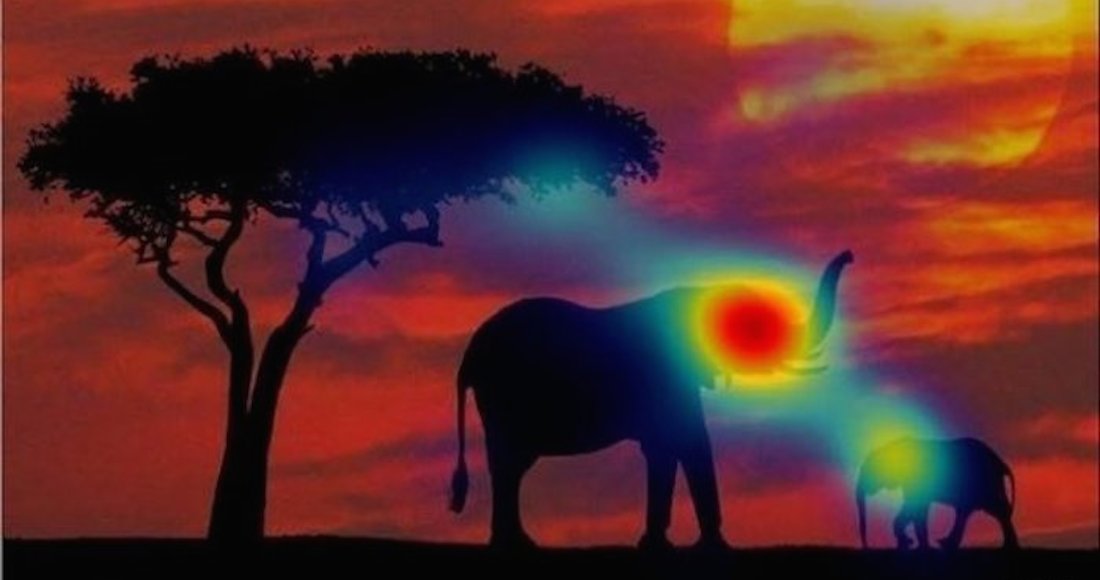 En este par de imágenes, la persona con autismo se fija más en el árbol y en el cielo en vez de en los elefantes que están en el primer plano.