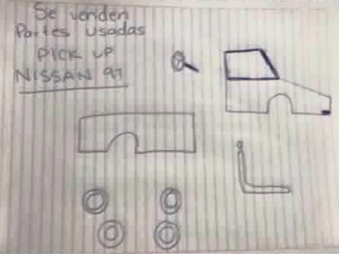 Ciudad de México, 11 de diciembre (SinEmbargo).- El siete de diciembre, Zaira Salazar Medina denunció en Facebook el robo de su camioneta, una Pick Up Nissan del año 1991, y a falta de una fotografía, decidió subir a la red social un dibujo con el siguiente mensaje: "El día de ayer en el tianguis del hector espino nos robaron un pick up nissan mod.91 con el num de placas vd52780 el carro esta dondeado gris con el techo negro si lo ven favor de llamarme [...] no tengo fotos pero les dejo un dibujo" (sic).