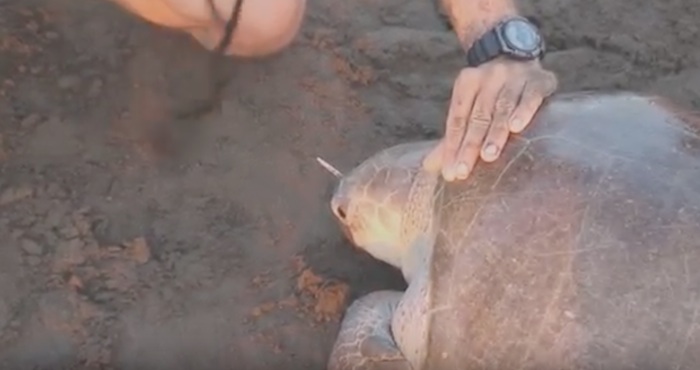 La ONG preservacionista The Leatherback Trust ha colgado un video en el que se ve cómo una tortuga olivácea o golfina tiene serios problemas para respirar. Tiene algo en su nariz, algo atrancado en uno de sus pequeños agujeros. Con unas pinzas y presionando notablemente en la cabeza del animal -no hay otra manera-, terminan por sacar todo un tenedor de plástico, resto de algún día de playa y tupper, o de una fiesta en la cubierta de un barco.