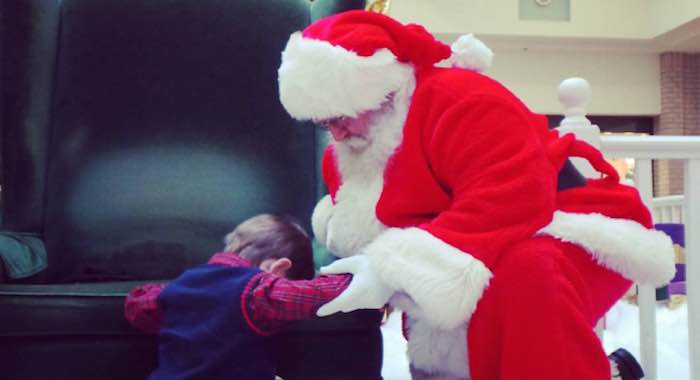 Prestyn Barnette, un pequeño de 4 años que vive en West Columbia, South Carolina, aparece en una foto en donde se le ve de rodillas, rezando en un centro comercial con Santa.