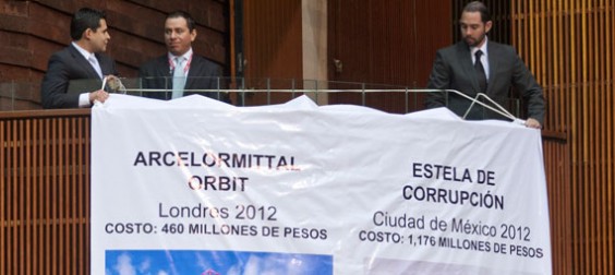 En la Cámara de Diputados el Partido Verde Ecologista colocó una manta en la que  que comparan la Estela de Luz con un monumento de Londres de nombre Arcelormittal Orbit, cuyo costo fue de 460 millones de pesos, dicha obra fue creada para conmemorar los Juegos Olímpicos que se realizarán en dicha ciudad.