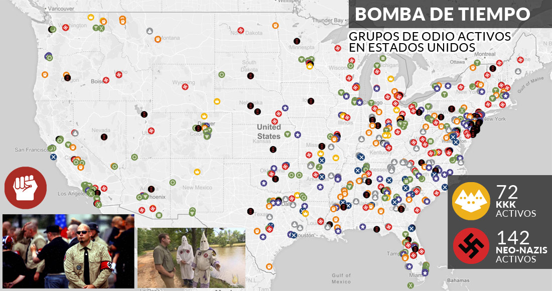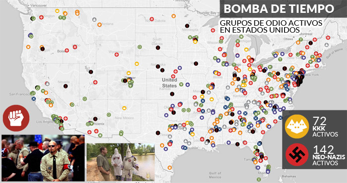 Ciudad de México, 24 de diciembre (SinEmbargo/DPA/EFE).– The Southern Poverty Law Center, una organización no gubernamental que se encarga de monitorear actividad extremista y racista en Estados Unidos, contabilizó 784 grupos de odio activos hasta 2014, aunque estos números podrían cambiar por un renacimiento de su ideología, alentada por el discurso del candidato presidencial Donald Trump.
