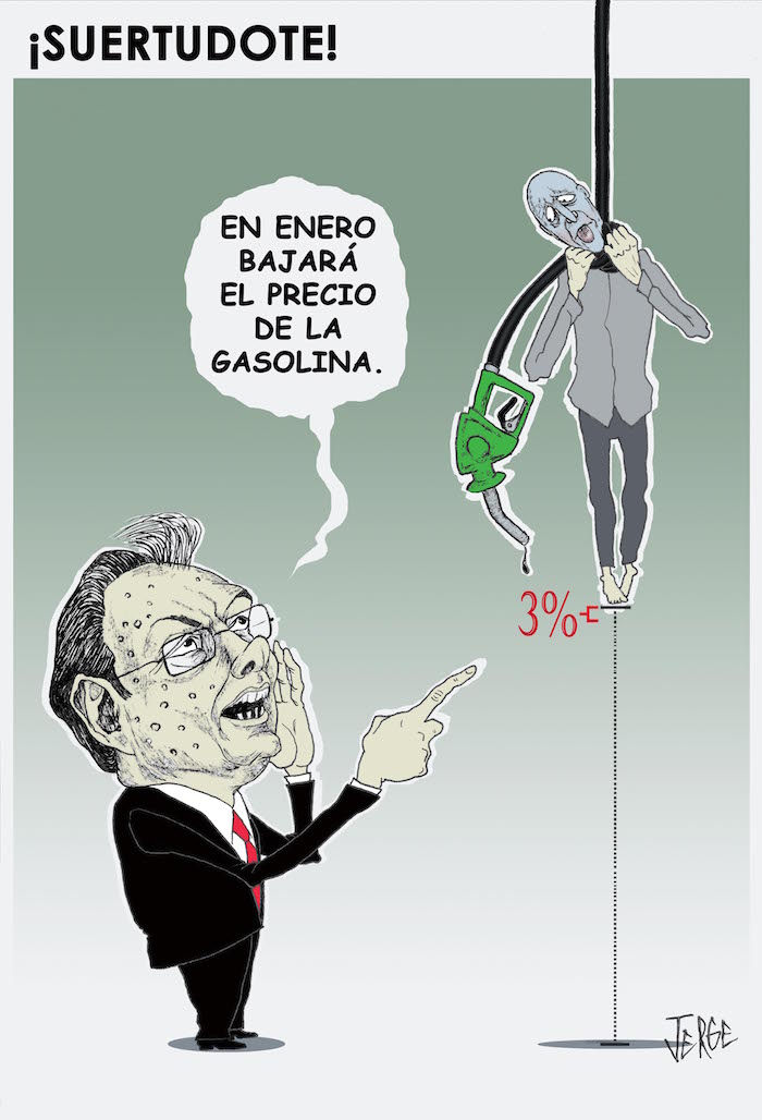 CARTÓN: ¡Suertudote! (Por Jerge) Monero Jerge 30/12/2015 - 12:01 am Monero Jerge Twitter: @monerojerge Lo dice el reportero + Sección Opinión El espejismo del Salario Mínimo “Un trabajador que gana el mínimo puede tener un ingreso nominal más alto, pero la realidad es... Por Francisco Ortiz Pinchetti Cuando todo falle, consulte el instructivo "López Obrador no necesitaba preguntar, mucho menos escuchar la crítica de los expertos. Él, en su inmensa... Por Diego Petersen Farah El amparo resiste, pero la amenaza sigue "La buena noticia es que, esta vez, los amagos no se consumaron. La mala es que volverán.... Por Leopoldo Maldonado Es la ley, estúpido "Mientras la ley no sea un manto protector de derechos, un mecanismo de garantía frente a la... Por Jorge Javier Romero Vadillo + Sección Opinión en Video Por Héctor Alejandro Quintanar El regreso de López Obrador y el peligro de un golpe de Estado Por Pedro Mellado Rodríguez La mentira que comparten Estados Unidos y México Por Juan Carlos Monedero Honduras: laboratorio para Donald Trump Por Lorenzo Meyer El gran juego China-EU Por Fabrizio Mejía Madrid Manifiesto contra la mentira Por Mario Campa Huelga de capital Por Álvaro Delgado Gómez ¿Por qué reaparece López Obrador? Por Ana Lilia Pérez Gertz Manero y el fracaso de las fiscalías Por Alejandro Páez Varela El Fiscal del fiasco Por Jorge Zepeda Patterson ¿Economía en problemas? Sí, pero no tanto + Sección Galileo Astronauta capta imagen del lago Titicaca desde la Estación Espacial Internacional ¿Podrá la inteligencia artificial sentir como un humano? Esto dice un neurocientífico Uso de smartphones en menores de 12 años acarrea problemas como depresión y obesidad FOTOS ¬ El INAH halla restos arqueológicos de Tenochtitlán tardía en La Lagunilla ¿Por qué el cáncer de mama luminal no responde a la inmunoterapia? Estudio lo revela El riesgo de muerte súbita por diabetes se dispara en jóvenes, afirman investigadores Investigadores de EU crean método microscópico para devolver vitalidad a las células Un estudio demuestra que frutas y cereales enteros pueden reducir riesgo de Alzheimer Un estudio señala que aumentar el número de pasos al día podría retrasar el Alzheimer El cometa 3I/ATLAS se aproxima a la Tierra: ¿cuándo y dónde podrá ser observado?