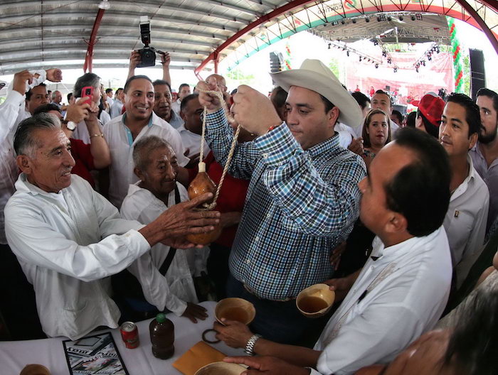 Ciudad de México, 29 de diciembre (SinEmbargo).– El Gobernador de Quintana Roo, Roberto Borge Angulo, celebró este día su cumpleaños número 36 con un mitin, un convivio, la inauguración y la promesa de obras en la comunidad maya de Chanchén Primero, en el Municipio de Tulum, con una cabalgata, e incluso con una corrida de toros. El mandatario contó con la presencia de líderes priístas, legisladores y otros gobernadores.
