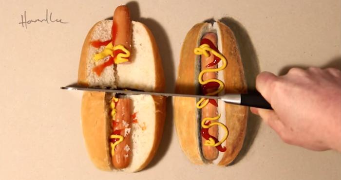 Si quieres picarte con sus dibujos hiperrealistas aquí tienes los ejemplos más recientes: el perrito caliente, los huevos y los cerillos. ¿Eres capaz de distinguirlo?