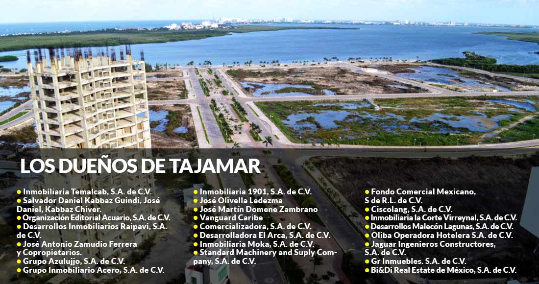 Entre las 22 empresas que pretenden edificar en la 59 hectáreas del Manglar Tajamar se encuentran algunas que son propiedad de personajes ligados a figuras de la política mexicana y otras más a la cúpula empresarial, principalmente de Nuevo León y Quintana Roo.