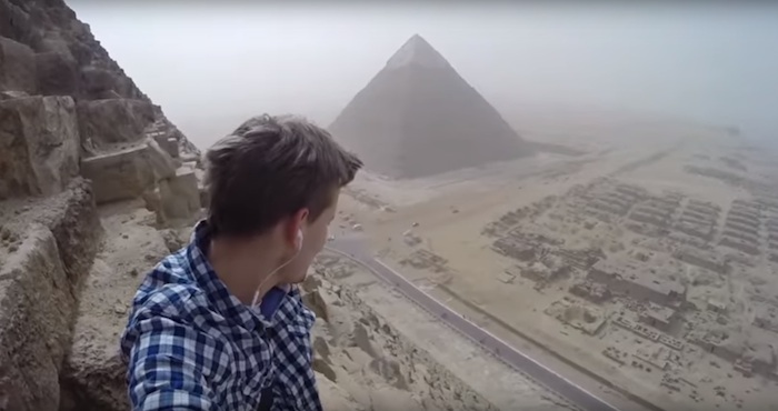 “Caminando por el complejo esperé el momento exacto para comenzar a escalar la Gran Pirámide, cuando estaba en la mitad la gente comenzó a mirarme y la policía me descubrió”, menciona el joven en el video.