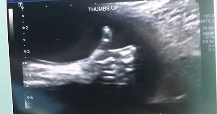La madre contó que el técnico de la clínica de Calgary donde hizo la ecografía le dio rápidamente al zoom y tomó la foto cuando vio al bebé con el pulgar levantado.