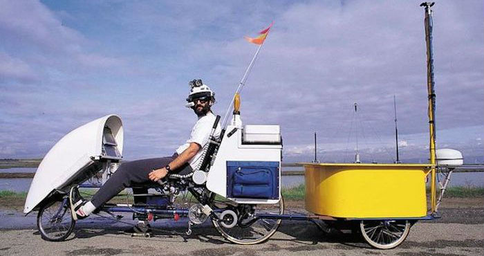 Steven Roberts, un apasionado de la electrónica, decidió abandonar la vida de urbanita en los 80 para convertirse en un "tecnómada". Vendió su casa y diseñó una bicicleta equipada con uno de los primeros portátiles para poder trabajar en cualquier parte. Su extravagante idea causó sensación en los medios y recorrió 27 mil kilómetros con futuristas vehículos: escribía en código binario con el manillar, movía el cursor con el casco y disponía de conexión a internet.