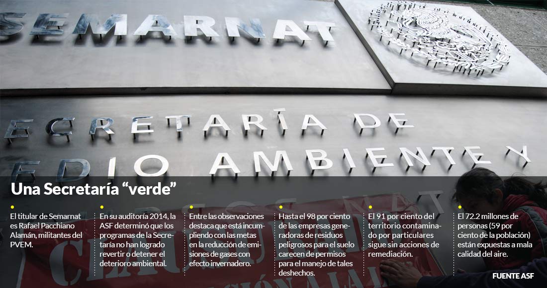 “En opinión de la ASF, la Semarnat no ha gobernado el problema público, ya que sus acciones de prevención, control, restauración y preservación, en coordinación con el Distrito Federal, los estados y municipios, no han logrado revertir la tendencia de la contaminación ambiental, así como las deficiencias de operación de los sistemas implementados por la Secretaría para registrar e integrar información clara, confiable, oportuna y suficiente para identificar los riesgos y formular criterios y políticas ambientales para prevenir la contaminación ambiental y la restauración de la calidad del aire, suelo y agua que permitan la adecuada toma de decisiones y la rendición de cuentas, lo que puede poner en riesgo la preservación de los recursos naturales y su sustentabilidad”, dice el dictamen.