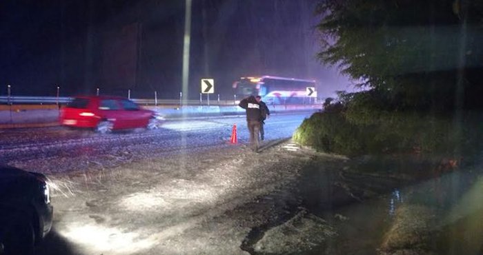 La caída de granizo generó problemas de circulación desde el miércoles por la tarde, derivando en el congelamiento del asfalto.