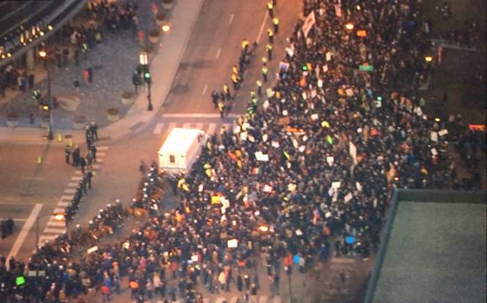 Las protestas por el mitin del precandidato presidencial habían sido organizadas desde hace días por una coalición de activistas, estudiantes, religiosos y políticos de la ciudad, entre ellos numerosas agrupaciones latinas y afroamericanas.