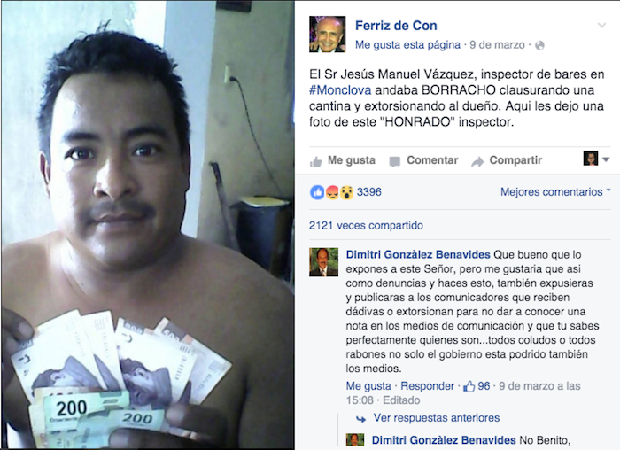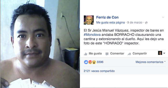 Saltillo, 12 Marzo (SinEmbargo/Vanguardia).- Un Inspector de alcoholes del municipio de Monclova, Coahuila, fue separado de su cargo, mientras se realizan investigaciones en su contra luego de darse a conocer en redes sociales que trató de extorsionar al propietario de un prostíbulo.