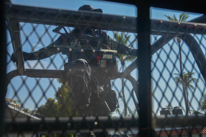 "Esto es por una situación que se dejó crecer desde hace años", diagnostica Flores es un despacho caluroso con decenas de botellas de agua y walkie-talkies. "Pero estamos haciendo rondines diarios y coadyuvamos con el ejército, la federación, las distintas policías ¡y estamos poniendo orden en Acapulco!"
