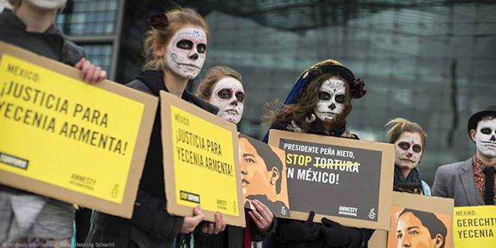 Amnistía se sumo a las protestas por la visita de Peña Nieto a Alemania. Foto: AI.