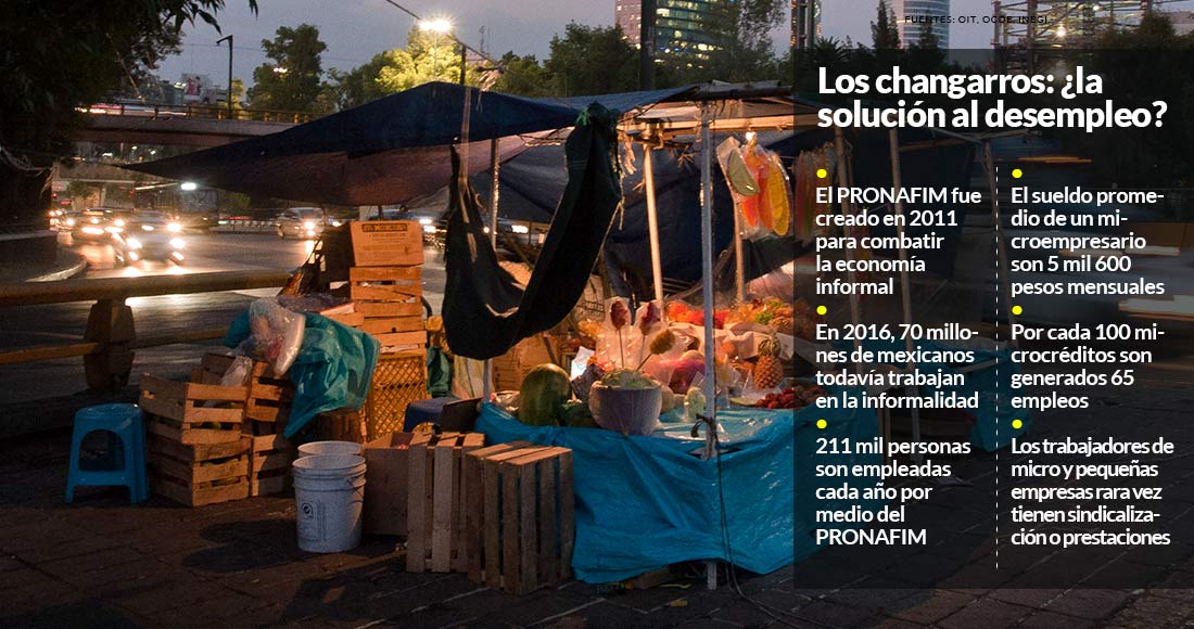 El Programa Nacional de Financiamiento al Microempresario (Pronafim) de la Secretaría de Economía (SE) fue creado en 2001, durante la administración del panista Vicente Fox con el objetivo de reducir el número de trabajos informales por medio de la creación de oportunidades de autoempleo a través de “apoyos no recuperables destinados a la difusión, promoción y operación de esquemas de microseguros y de capacitación al microempresario”. Fox Quesada se refirió como “changarros” a estas micro y pequeñas empresas.
