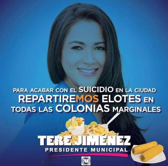 Ciudad de México, 19 de mayo (SinEmbargo).– María Teresa Jiménez Esquivel, candidata del Partido Acción Nacional (PAN) a la Alcaldía de Aguascalientes, se vio envuelta en la polémica tras afirmar que combatirá lo altos índices de suicidio que se presentan en la entidad con el consumo de elotes.