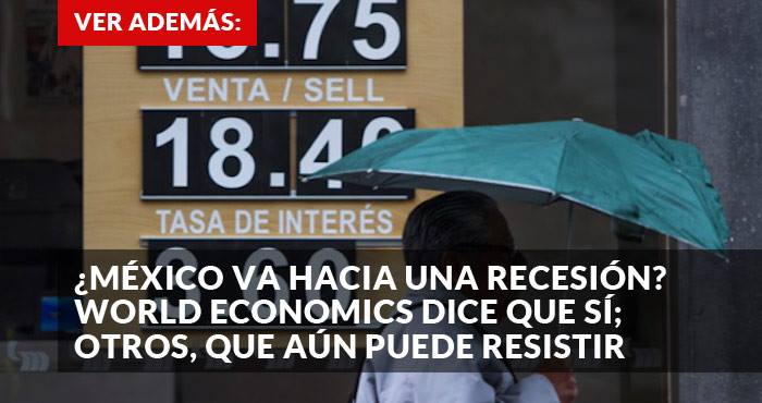Ayer, el World Economics, advirtió que México está a punto de sumergirse en una recesión económica que no enfrentaba desde 2009, alertó , una organización dedicada a la elaboración de pronósticos y mediciones en distintos países, basados en los índices de los sectores manufacturero y de servicios.