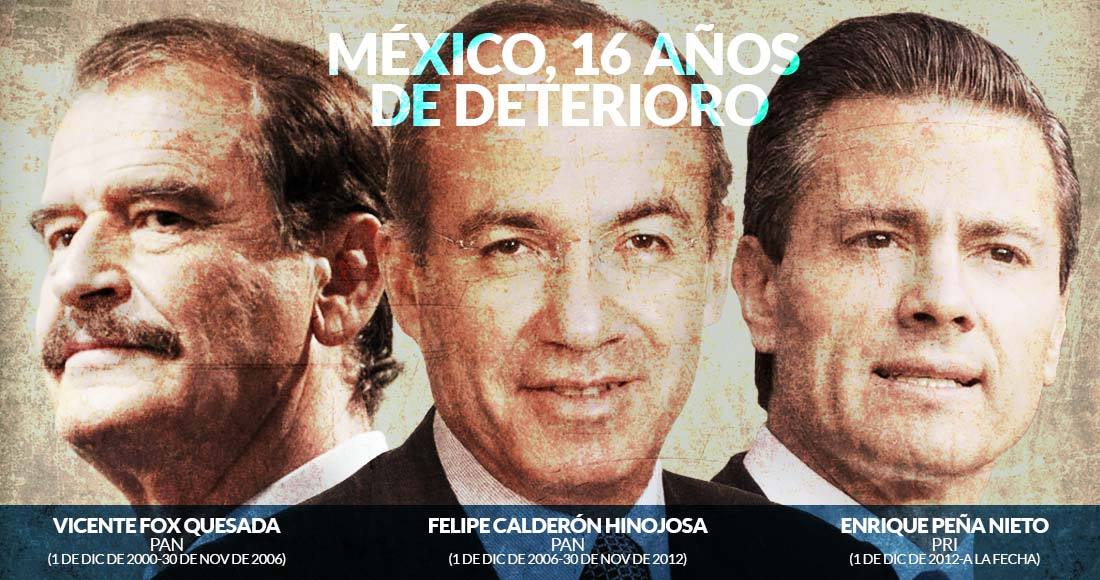 Pero 16 años después de esas promesas fracasadas, México padece más males que los quiso curar en los años de la alternancia. El país –con el caso fallido de los 43 normalistas de la Escuela Normal Rural Raúl Isidro Burgos, desaparecidos en Iguala en septiembre de 2014– se evidenció ante los ojos del mundo y las organizaciones humanitarias como una Nación que vive una seria crisis de derechos humanos, en donde la tortura y la desaparición forzada son una práctica común.