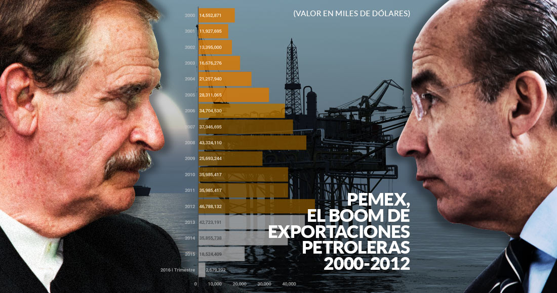 Ciudad de México, 30 de mayo (SinEmbargo).– "Nosotros, una Nación rica en petróleo, dentro de nueve años no tendremos un solo barril que vender al exterior; las exportaciones de petróleo son y han sido el sustento de nuestro presupuesto", dijo Vicente Fox Quesada en abril de 2010, cuatro años después de haber entregado la Presidencia de México a Felipe Calderón Hinojosa. Ambos presidentes, emanados del Partido Acción Nacional (PAN), tuvieron durante sus administraciones la más alta producción petrolera en la historia de México y petroprecios récord que dieron altos márgenes de ganancia.