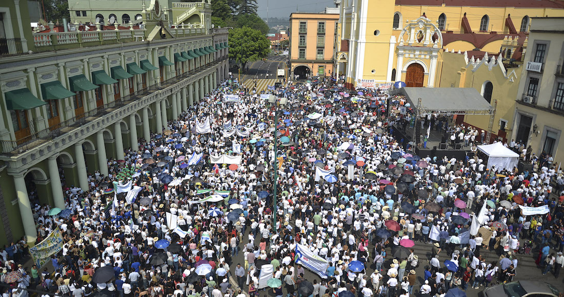 Los inconformes marcharon por la Plaza Lerdo, considerada el corazón de las manifestaciones políticas y sociales de Xalapa, Veracruz.