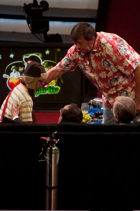 El escritor hizo su aparición en silla de ruedas y durante la grabación su respiración estuvo auxiliada por oxígeno debido a que en los últimos años su estado de salud ha sido delicado, mismo motivo que hizo que "Chespirito" se retirara antes de terminar el evento.