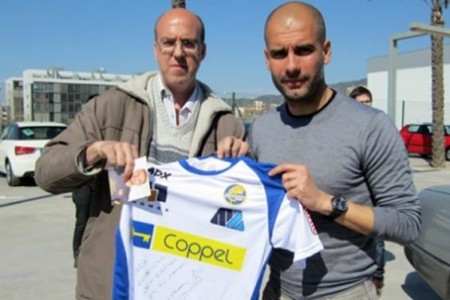 Joseph Guardiola, entrenador del FC Barcelona, recordó los meses en que vistió la casaca de Dorados de Sinaloa en México y posó con la playera del cuadro mexicano desde España. El timonel español recibió de parte de la Directiva del equipo sinaloense la actual indumentaria del equipo y de inmediato posó para la fotografía.