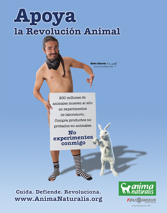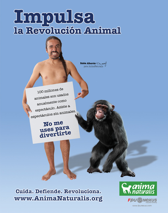 La campaña "Revolución Animal" expone las cuatro principales áreas de crueldad hacia los animales, que corresponden a los rubros: Alimentación, Experimentación, Vestimenta y Espectáculos.