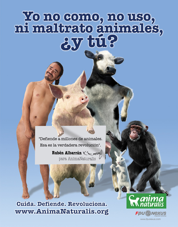 El vocalista de Café Tacuba dijo estar comprometido con diversas causas sociales, y por eso manifiesta su apoyo a la organización AnimaNaturalis para invitar a la sociedad a adoptar estilos de vida respetuosos con los animales.