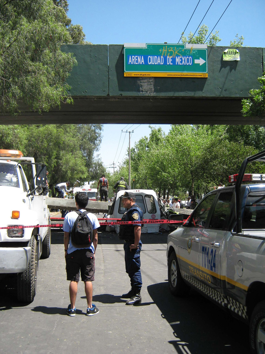20320046. México, D.F.- En el Eje 5 norte un puente peatonal se colapsó sobre un microbús, en la delegación Azcapotzalco. No se reportan lesionados.