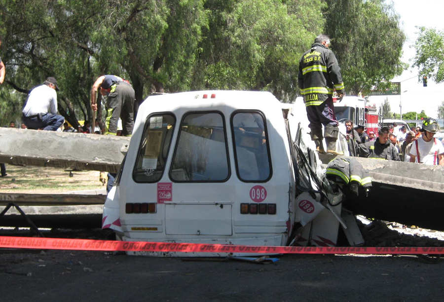 20320047. México, D.F.- En el Eje 5 norte un puente peatonal se colapsó sobre un microbús, en la delegación Azcapotzalco. No se reportan lesionados.