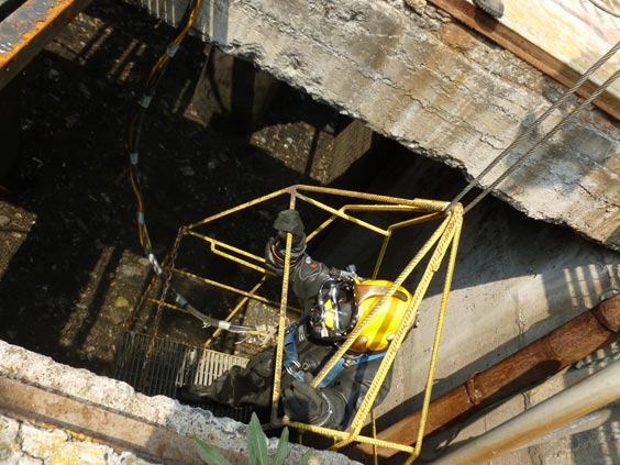 Julio César Cú Cámara siempre bucea en las aguas negras, en ocasiones en los colectores grandes de la capital. Dice que tomó varios cursos hasta que le ofrecieron este trabajo. Según él iba a durar poco tiempo limpiando las alcantarillas, pero ya lleva 28 años.
