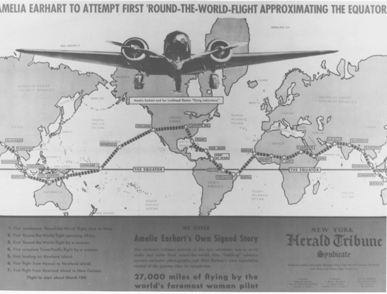 Después de recibir al Electra partió de Los Ángeles hacia Florida el 21 de mayo de 1937. El 1 de junio salieron de Miami, y su primer destino fue San Juan, Puerto Rico, de ahí bordeó Sur América con rumbo a África y el Mar Rojo. Desde allí realizó un vuelo inédito en la historia de la aviación, hacia Karachi en la India. Después se dirigieron rumbo a Calcuta el 17 de junio. Luego, sus destinos fueron Rangoon, Bangkok y Bandoeng, Singapur.