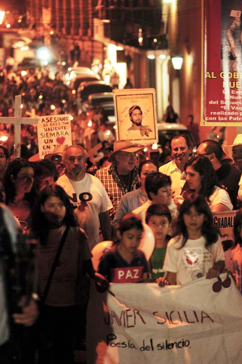 Y fuera por ese miedo o por simple apatía, poca resonancia tuvo la convocatoria para rememorar la muerte de Juan Francisco Sicilia, María del Socorro Estrada Hernández, Jaime Gabriel Alejo Cadena, Álvaro Jaimes Aguilar (exmilitar, con el grado de subteniente), Julio César Romero Jaimes, Luis Antonio Romero Jaimes y Jesús Chávez Vázquez. Ya no estuvieron los miles que hace un año marcharon por las calles de la ciudad; apenas llegaron dos autobuses de la Ciudad de México y por la noche cerca de 300 personas acompañaron a las familias de las víctimas en la marcha por unas cuantas calles y con velas encendidas.