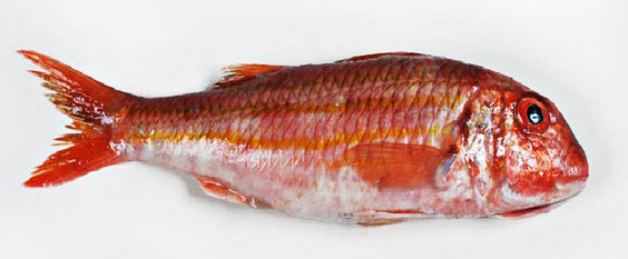 Pescado de agua salada. Pez pequeño, de color rosado, piel con escamas, carne rosada, pequeñas espinas. Aunque algunas veces observará un color verdoso según el tipo, lo cierto es que todos acaban con su color rojizo cuando les quitan las escamas, cosa que se suele hacer antes de llegar al mercado, por darun aspecto más atractivo a los consumidores. No dude en comprarlo si lo ve verde, de hecho es su color natural. El de fango se distingue del de roca por ser generalmente de un tamaño menor y carece de bandas amarillentas y de dibujos en las aletas. El de roca tiene un sabor más intenso, es más caro y apreciado. Usos: A la parrilla, al horno y a la plancha.
