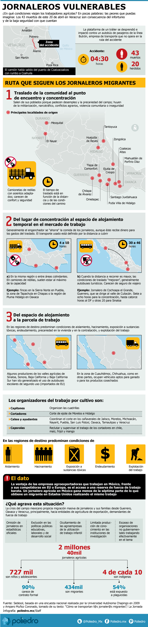 INFOGRAFÍA: Infortunios y riesgos de los trabajadores del campo en México Redacción/SinEmbargo 22/04/2012 - 12:00 am Redacción/SinEmbargo Lo dice el reportero + Sección Opinión Cada quien su Navidad "La Navidad es la prórroga que se ofrece para ser felices. Bailar, comer, gastar, olvidar los problemas,... Por Susan Crowley Noches de hospital y escucha "El sino del escorpión fue salir volando de su refugio tropical en la costa del Pacífico nayarita... Por Alejandro De la Garza La izquierda iberoamericana frente al 2026 "La pregunta es si en estos procesos de relevó continuará la debacle electoral que se inició prácticamente... Por Ernesto Hernández Norzagaray Circuitos fundidos "Durante décadas, el vecindario funcionó precisamente así: en serie. Había una interdependencia que no estaba escrita en... Por Francisco Ortiz Pinchetti + Sección Opinión en Video Por Alejandro Calvillo San Francisco vs Coca y UPs Por Héctor Alejandro Quintanar Un deseo decembrino Por Pedro Mellado Rodríguez “Alito” debe ser candidato presidencial del PRI en 2030 Por Fabrizio Mejía Madrid Cinco figuras tristes de 2025 Por Juan Carlos Monedero ¿Noche de paz? ¿Noche de amor? Por Mario Campa Los riesgos de la economía global en 2026 Por Óscar de la Borbolla El color de nuestro tiempo Por Ana Lilia Pérez Regina y Ernestina Por Alejandro Páez Varela Los conspiradores Por Muna D. Buchahin Umbral de corrupción + Sección Galileo Estudio indica que no existe la nicotina "segura"; los vapeadores también son dañinos ¿Pies fríos? Descubre qué enfermedades se esconden detrás y cuáles son las alertas Científicos de la UNAM revelan a detalle el interior del Popocatépetl con ayuda de IA ¿Sabías que el agua de coco tiene muchos beneficios para la salud? Descubre cuáles ¿Tienes un perro nervioso? Aquí unos trucos para calmarlo y evitar estrés en Navidad ¿Piensas regalar juguetes? Expertos dan tips para saber si tienen tóxicos peligrosos Investigadores descubren cómo células del cerebro ayudarían a reparar médula espinal Fiestas decembrinas elevan riesgo de ataques cardíacos por comida y alcohol: expertos ¿Qué hacer si alguien se atraganta en la cena de Navidad? Así puedes salvarle la vida Investigadores hallan especímenes del ajolote del Altiplano tras 15 años sin registro