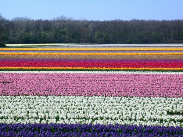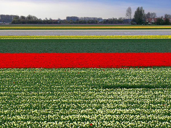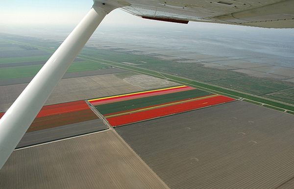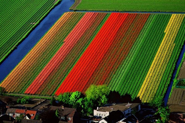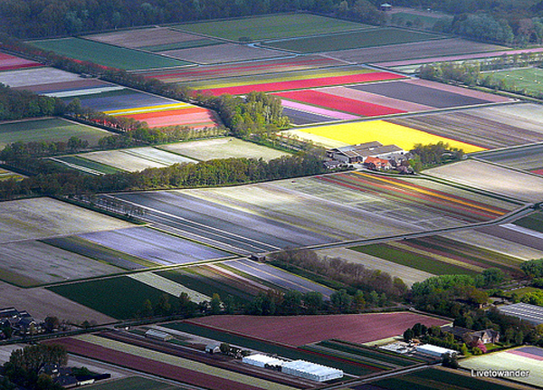 Desde el aire, los campos de tulipanes de Holanda parecen arte abstracto. Decenas de miles de turistas acuden cada año a ver a estas espectaculares tierras de cultivo en toda su gloria technicolor.