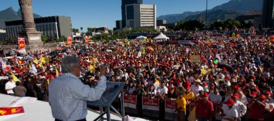 Andrés Manuel López Obrador, candidato presidencial del Movimiento Progresista, llamó a combatir la corrupción ante miles de seguidores que se reunieron en la Explanada de los Héroes (Macroplaza) de Monterrey.