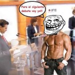 Julia Orayen, la edecán que causó furor por los segundos que apareció en el debate presidencial, es ahora “meme”. Ella y el candidato del Panal, Gabriel Quadri. Tanto por Facebook como por Twitter circulan imágenes tomadas de la televisión que son alteradas en Photoshop.