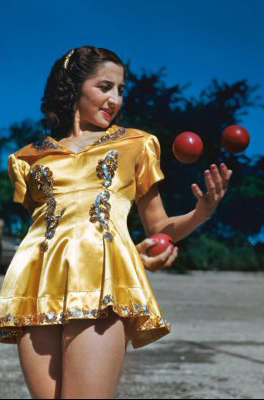 La famosa malabarista Lottie Brunn, Ringling Bros., y Barnum & Bailey, 1949.