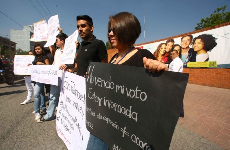 20518025. México, D.F.- Estudiantes de universidades privadas se concentraron en las instalaciones de la Universidad Iberoamericana, para marchar rumbo a las instalaciones de una televisora, en protesta por el manejo mediático de las campañas presidenciales.