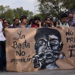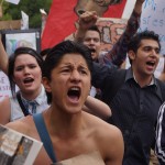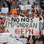 También gritaron: “¡Ibero aguanta, el pueblo se levanta!”, en respaldo a la universidad capitalina que fue acusada de haber sido infiltrada por porros y reventadores que rechazaron a Peña Nieto, cuando la visitó el pasado 11 de mayo.