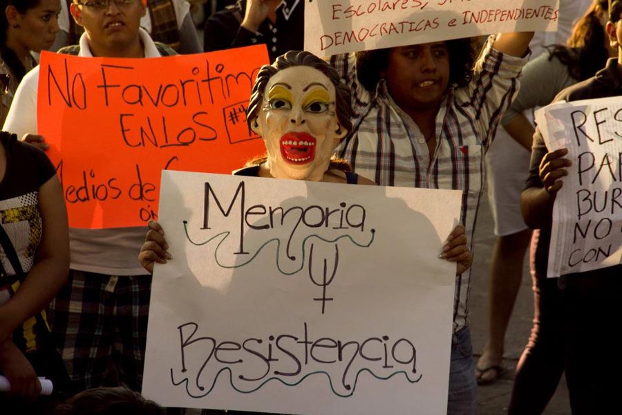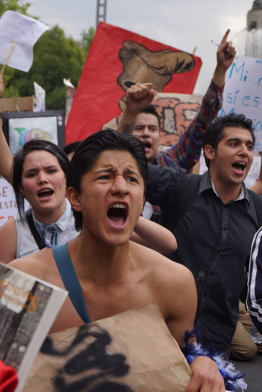 “Esos son, esos son, los que chingan a la nación”, “Si hay imposición, habrá revolución”, “Hay que estudiar, hay que estudiar, el que no estudia, como Peña va a acabar”.