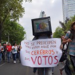 En sus cartulinas se leían frases como “Somos mexicanos informados, cuando los medios callan, gritamos”, “Ustedes tienen los medios, nosotros las calles” y “A mí los medios no me manipulan”.