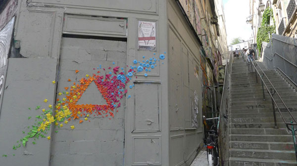Más allá de los límites de las galerías y espacios cerrados Maurice irrumpe con su obra e interviene espacios públicos con palabras tejidas y dibujos bordados. Sin embargo, una de sus obras más llamativas son las figuras papel doblado que coloca en los muros a manera de grafiti y forman coloridas estructuras geométricas.