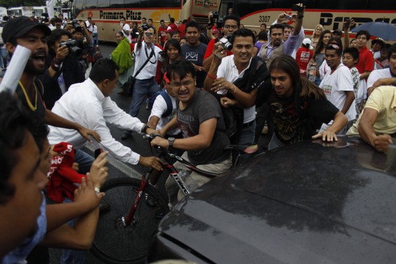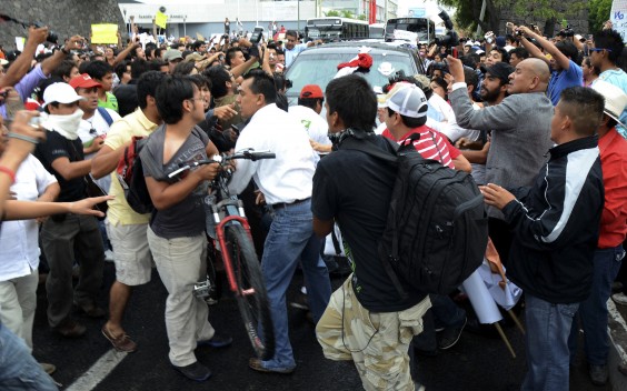 Universitarios bloquean camioneta de EPN, aunque ya no iba en ella; rechazan visita a Querétaro