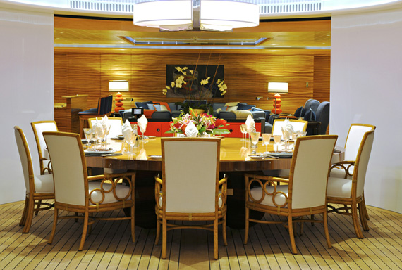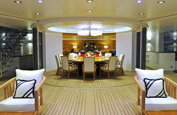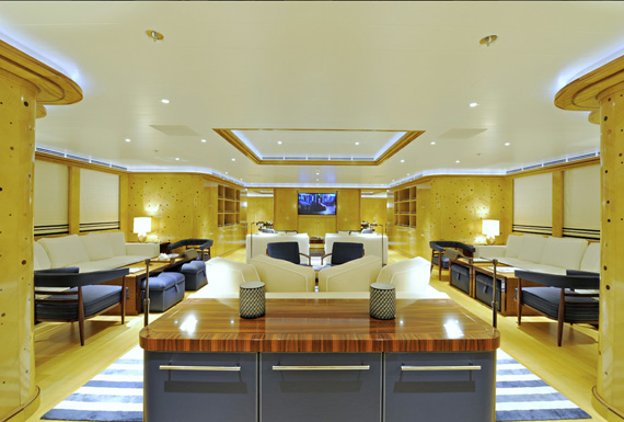 La embarcación está construida para “respirar total serenidad”. Esto no excluye la posibilidad de “arribar en helicóptero para disfrutar de fastuosas fiestas en una terraza al aire libre para bailar”. “Está equipado con magnificencia y refleja el amplio conocimiento de Lurssen para satisfacer al más sofisticado trotamundos”, subrayan los armadores.