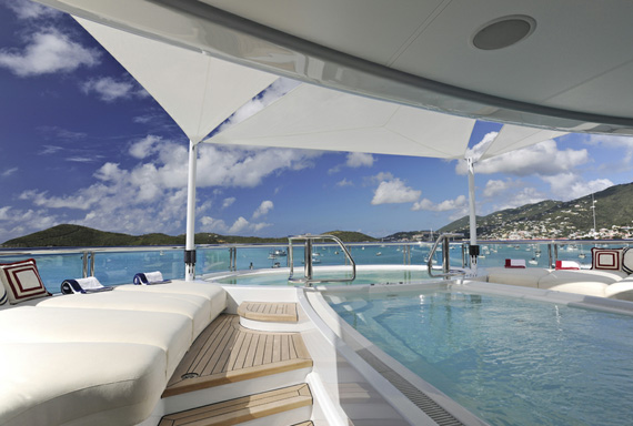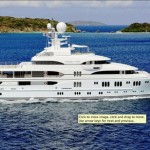 “Considere estos atributos extraordinarios del glamoroso Mad Summer: aparte de su propia cubierta con terraza, solárium y piscina, posee seis suites para los invitados, cada una con una decoración diferente; más sala de cine, jacuzzi y spa para 16 personas, sala de buceo, salón de masajes, gimnasio…
