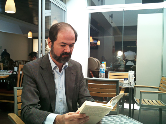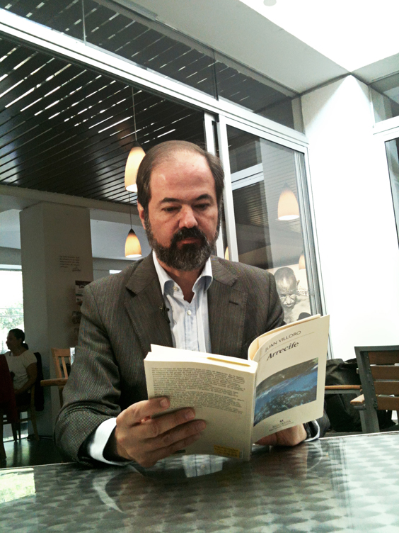 Juan Villoro se despide. Corre, literalmente, pues en unos minutos comenzará la presentación de Arrecife en una librería que está cruzando la calle.